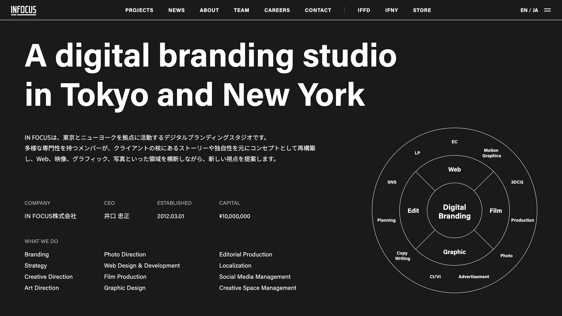 インフォーカスは2012年に創業した東京とニューヨークを拠点に活動するデジタルブランディングスタジオです。