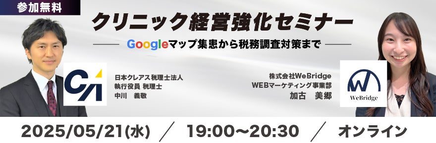 【無料ウェビナー開催】クリニック経営強化セミナー Googleマップ集患から税務調査対策まで