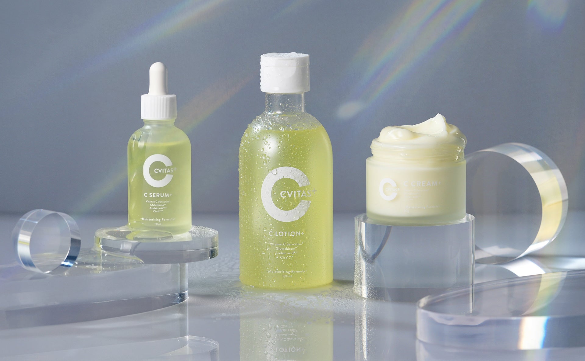 『CVITAS+』は5種のビタミンC誘導体に「次世代レチノール*²」「アゼライン酸誘導体*³」「グルタチオン*⁴」「CICA*⁵」などの話題成分を独自のバランスで配合した、日々の素肌のことを徹底的に考え抜いた新スキンケアラインです。