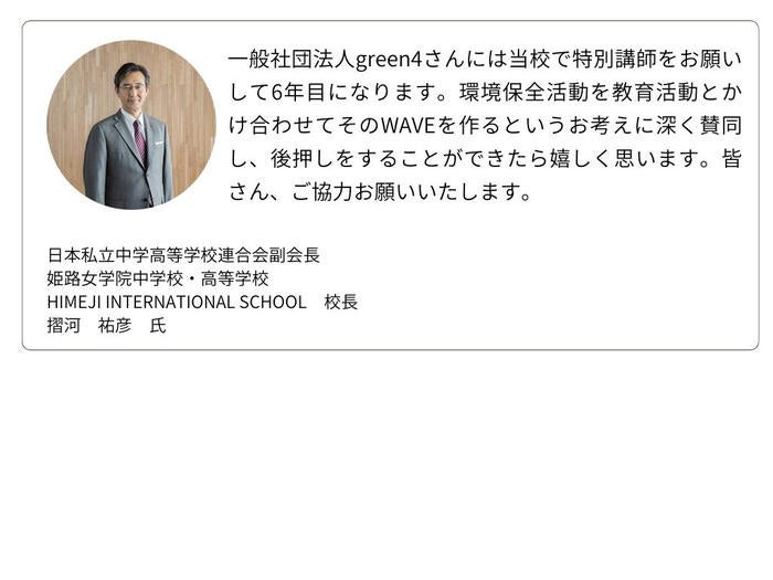 そのため、一般社団法人green4では、オフィシャルサイトにて引き続きご支援を受け付けていくことを決定いたしました。