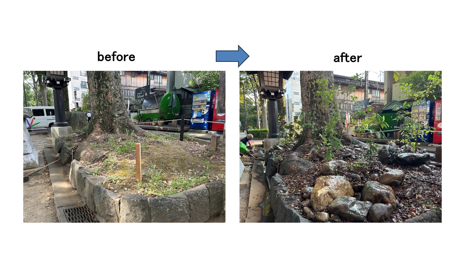 今後も範囲を拡大し、長期的な視点で参道全体を再生していく必要があります。