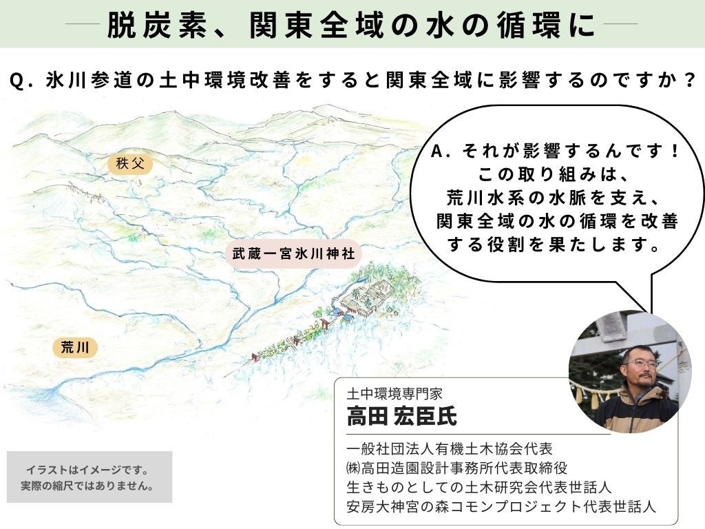 「また、この取り組みは単なる地域貢献にとどまりません。荒川水系の水脈を支え、関東全体の水の循環を改善する役割を果たします。都市化によって失われた水の浸透を回復し、『水を蓄える森』をつくることが求められています。このプロジェクトは、関東一帯の水と緑のバランスを回復させる重要な一歩となるでしょう。」