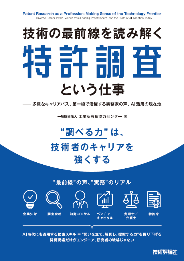 一般財団法人 工業所有権協力センター(略称:IPCC、本部:東京都江東区)は、特許調査の基礎からキャリアの広がり、実務のリアル、そして急速に進むAI活用までを一冊にまとめた書籍『技術の最前線を読み解く特許調査という仕事』を、2026年4月7日(※)より発売します。技術を“読み解き、整理し、使える形にする”――調査の現場で磨かれる論理思考とリサーチスキルが、研究開発や事業戦略を支えています。理系・文系を問わず、学生、若手~中堅エンジニア、知財部門志望者に最適の入門書です。