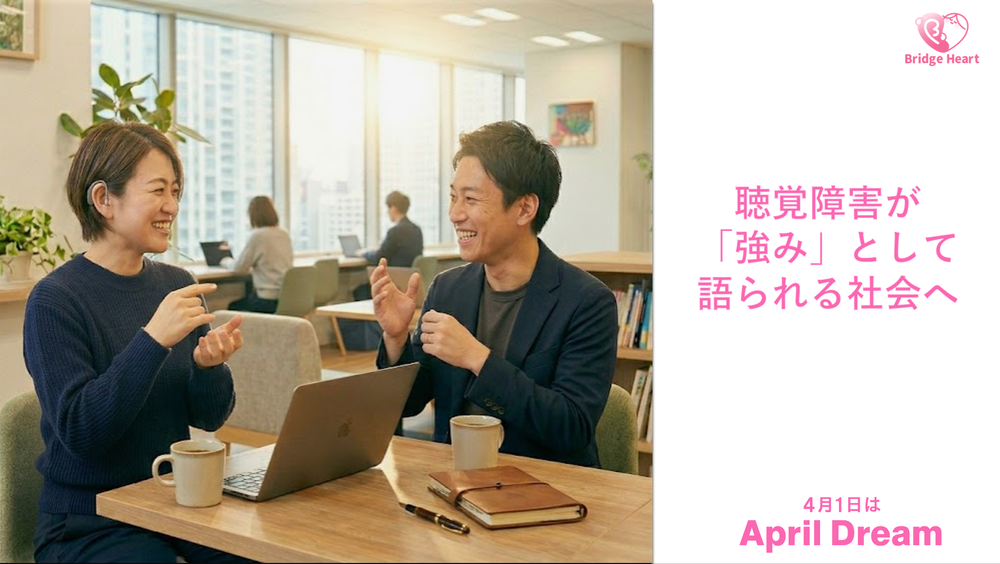 私たち一般社団法人Bridge Heartは、「聴覚障害者が自分に自信を持ち、自分らしく生きていける社会」の実現を目指しています。