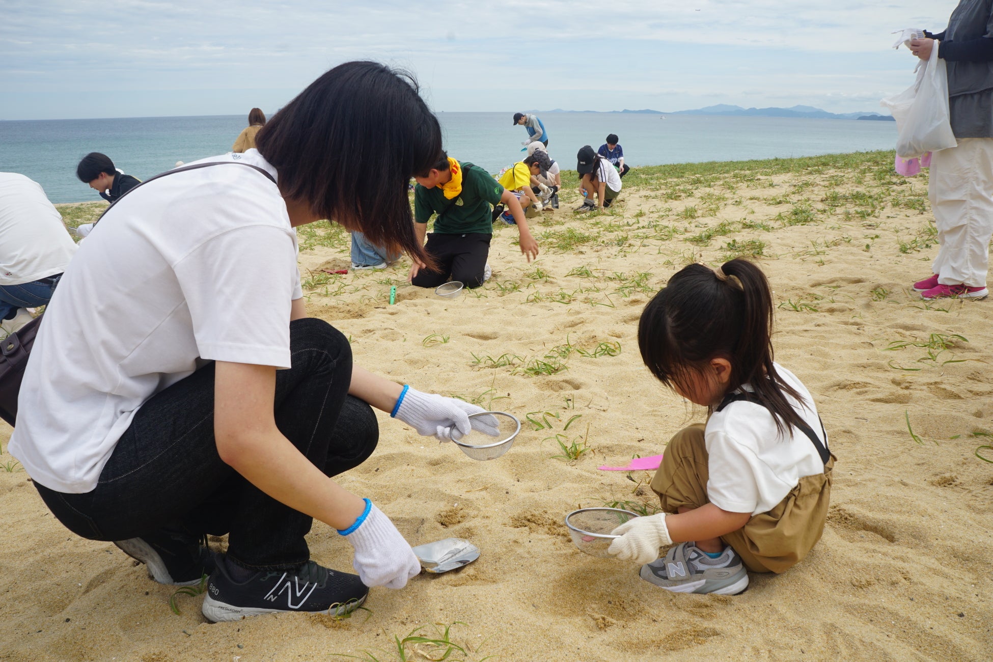 そして今回は、「体験」をテーマに「ステハジ」ビーチクリーンで海洋ごみを回収する事だけでなく、細かなプラスチックごみ(マイクロプラスチックなど)を回収する“「ステハジ」プラ干狩り体験”に取り組んでいただきました。またビーチクリーン終了後には、海洋ごみについての学びと、回収した細かなプラスチックごみを使った「ステハジ」海洋プラごみアート体験を実施いたしました。イベントに参加した子どもから大人へのメッセージが届けられる場面や、楽しくアート作品に取り組む姿が見られ、アビスパ福岡とスポンサー、サポーターが、今日の海をきれいにするだけでなく、未来の海をきれいにすることについても考えていただくきっかけとなりました。