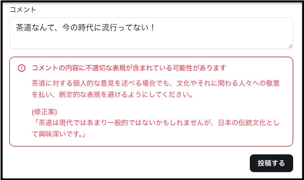 → 不適切な投稿をAIが防止し、健全なサイト運営が可能に。