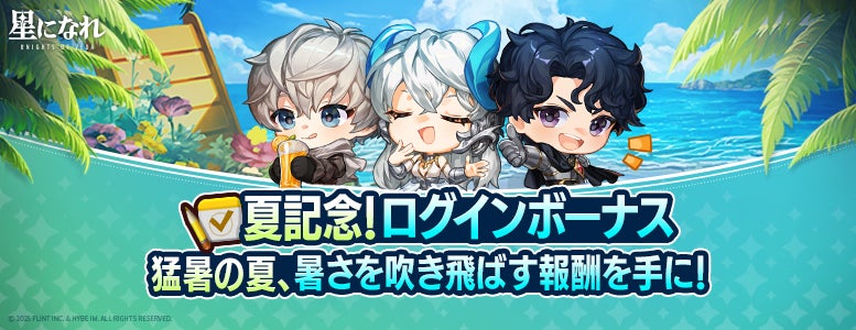 様々な夏を迎えるイベントも用意しました。6月26日から7月31日までの「みんなで始める夏の旅」イベントでは、ゲームにログインすると、「運命の結晶」及び「絆の結晶」、「星石」を獲得することができます。