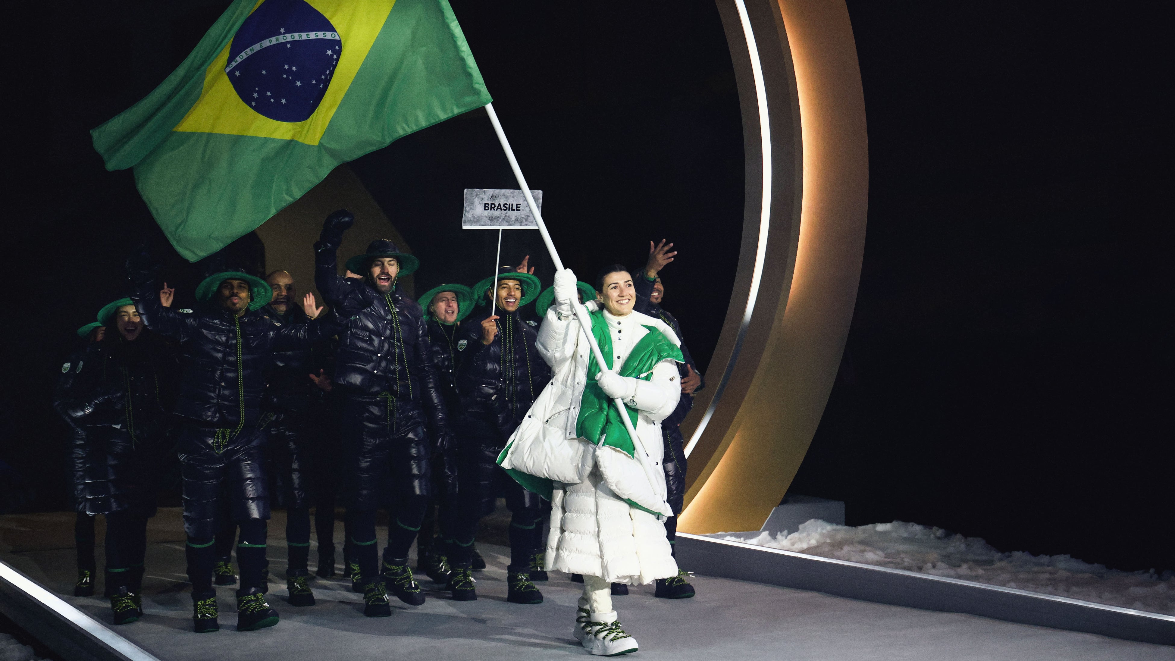 2月7日に開催された2026年ミラノ・コルティナ冬季オリンピック開会式において、ブラジル代表チームは、ブラジルオリンピック委員会のオフィシャルスポンサーであるモンクレールが手がけた、開会式および閉会式のために制作された特別仕様の公式ユニフォームを着用して登場しました。
