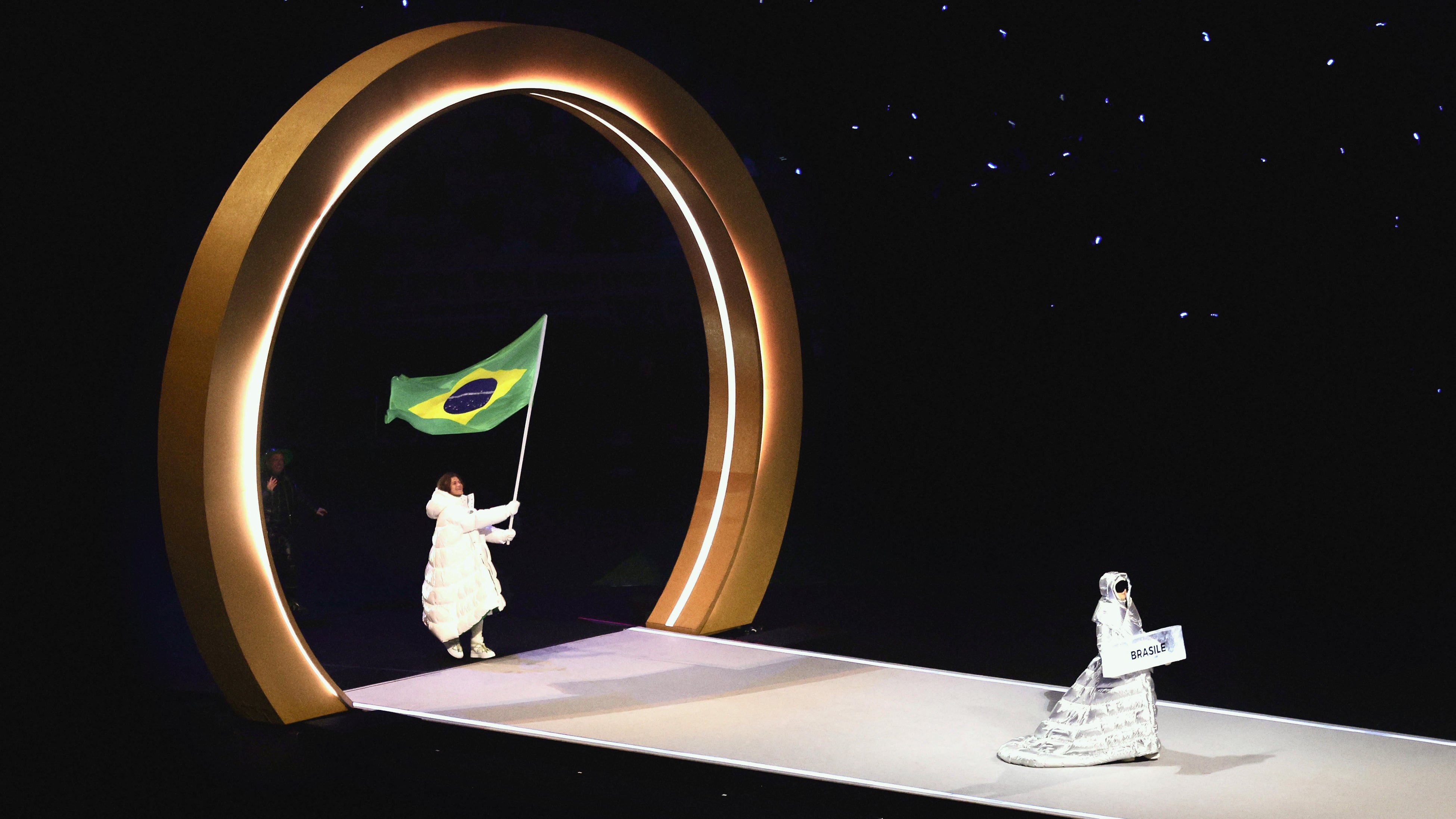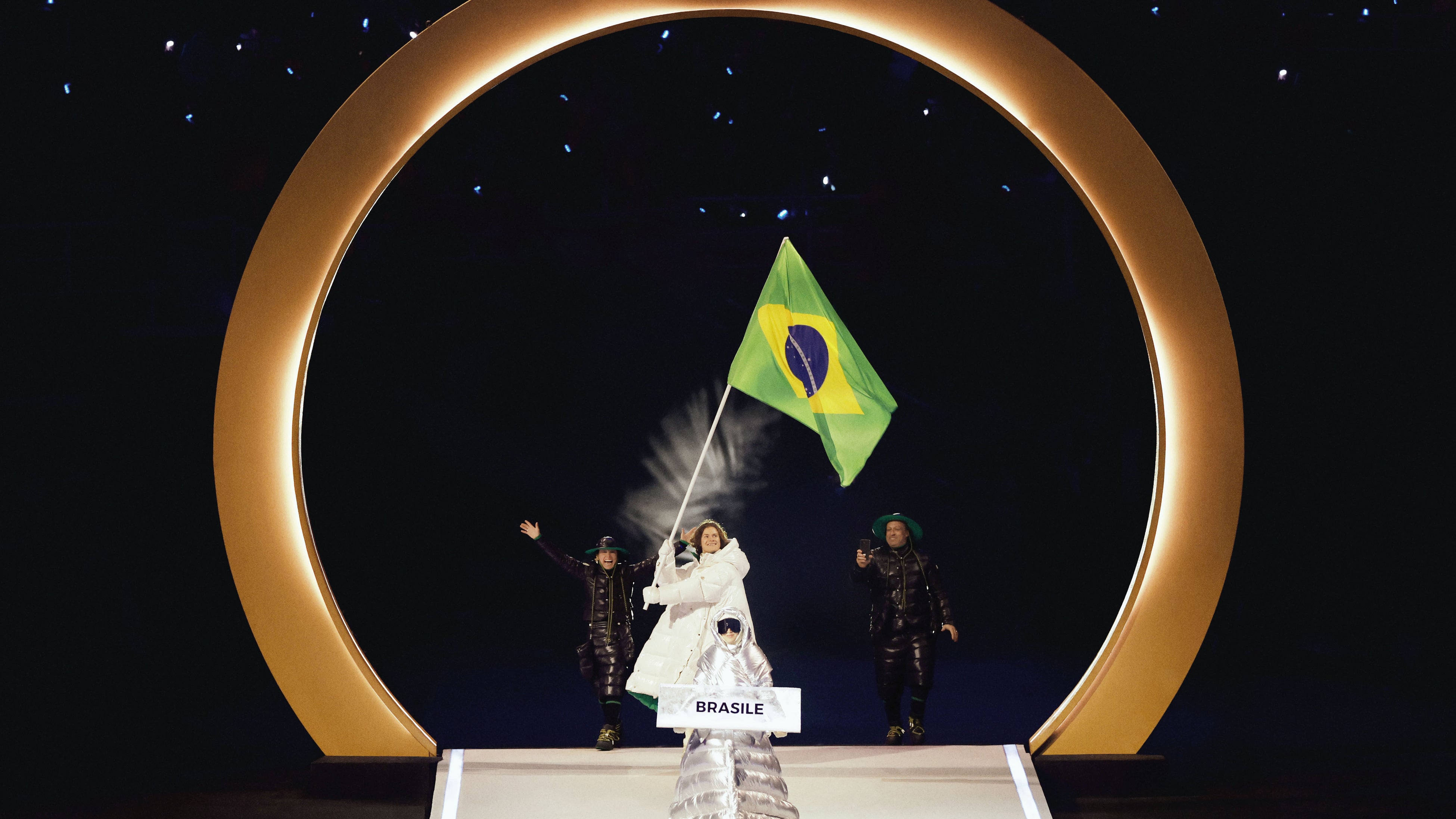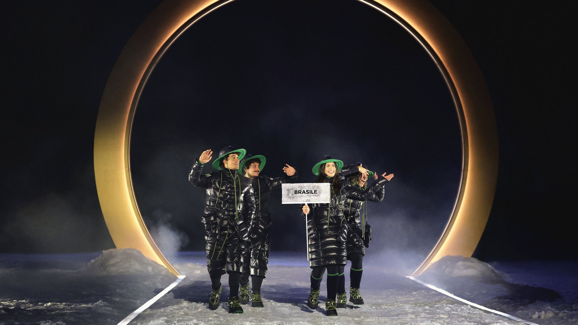 ミラノ・コルティナ冬季オリンピック開会式にて ブラジル代表チーム、モンクレールが手掛けた公式ユニフォームを着用