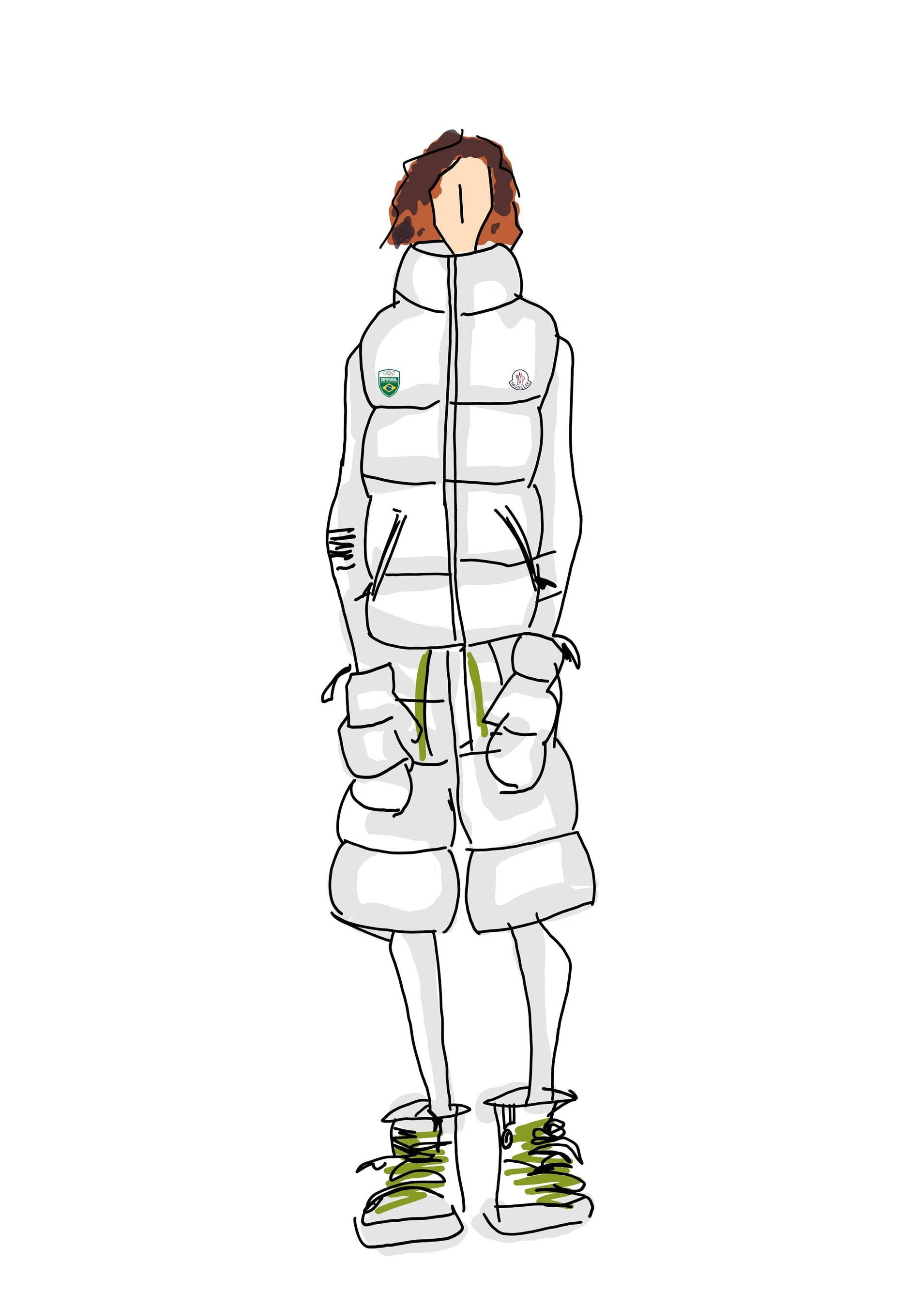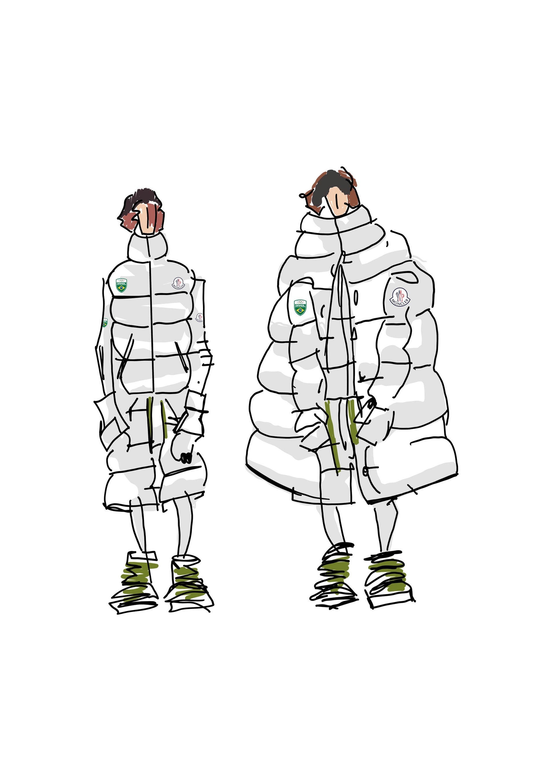 旗手の装いはホワイトとグリーンのカラーパレットで構成され、その他のブラジル代表チームはブルーとグリーンのアンサンブルを着用しました。いずれのカラーも、ブラジル国旗に由来するものです。すべてのユニフォームには、ブラジルの星、ブラジルオリンピック委員会のエンブレム、そしてモンクレールのロゴがあしらわれています。