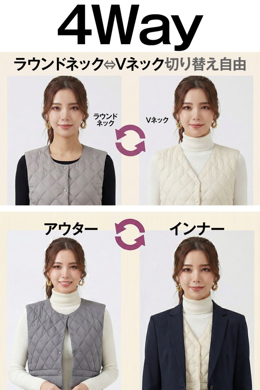 首元も着方も変えられる4WAY。女性のための細見えヒートベスト