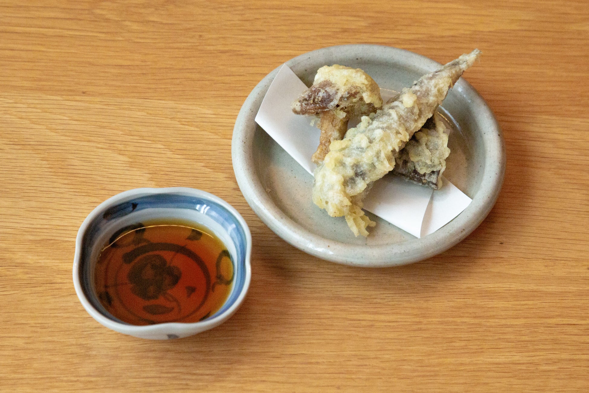 ・めひかり、ジャンボなめこ、生しいたけの天ぷら