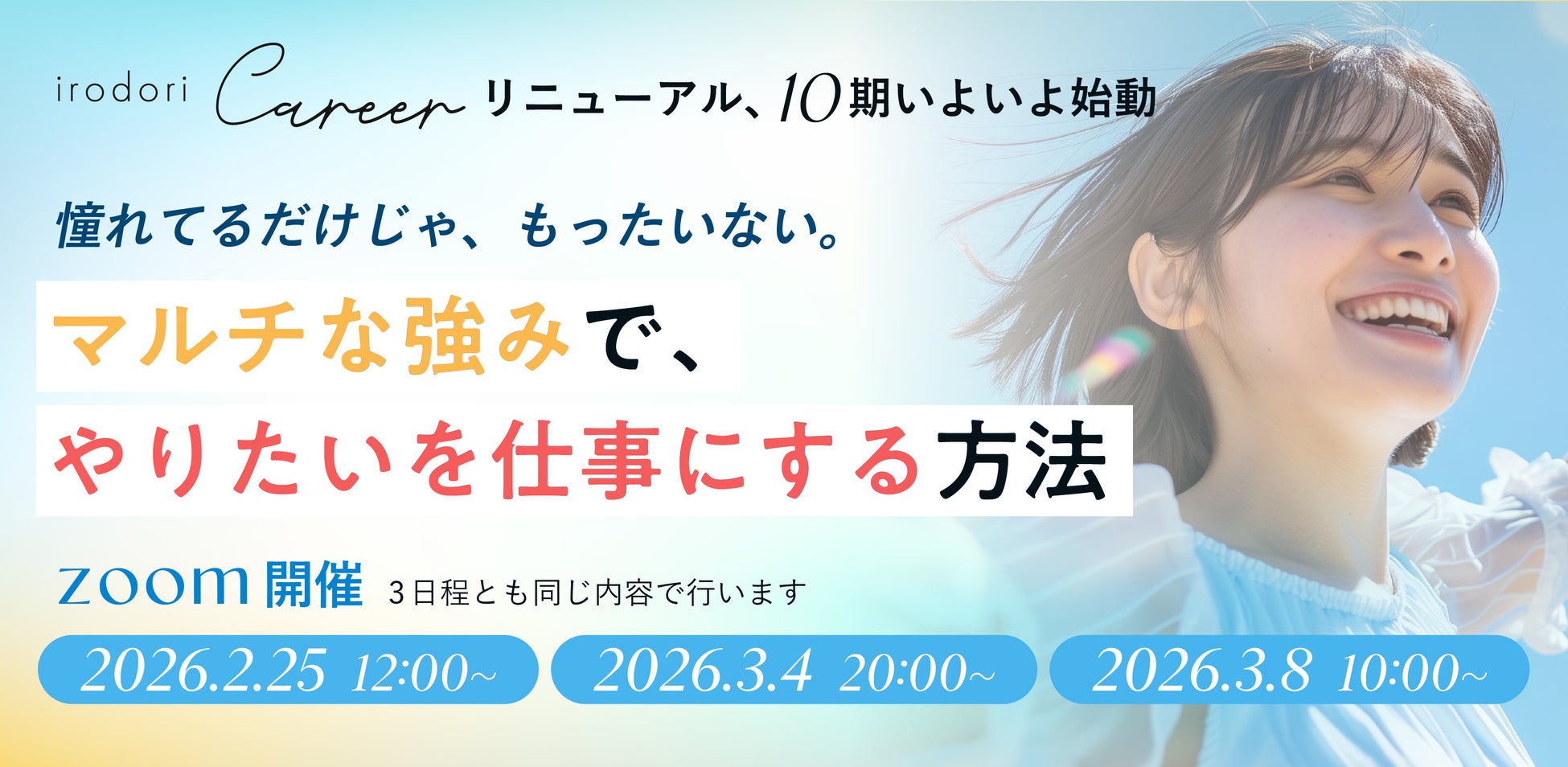 「憧れてるだけじゃ、もったいない。マルチな強みでやりたいを仕事にする方法ーirodori Career10期リニューアル説明会」