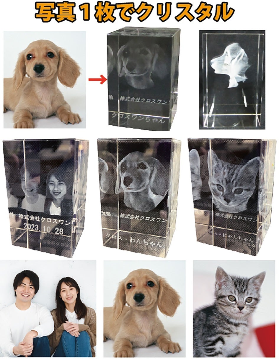 ★写真(正面の顔「人・犬・猫」)1枚を送付して頂くだけで、3Dクリスタルの作成も可能です。