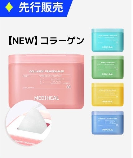 韓国で14年連続売上No.1*² を誇るダーマコスメティックブランド「MEDIHEAL(メディヒール)」より、日本限定の新商品『コラーゲン ファーミングマスク』と『マデカッソシド 3ミニッツマスク』を、オフラインに先駆けてQoo10公式ショップで発売いたします!