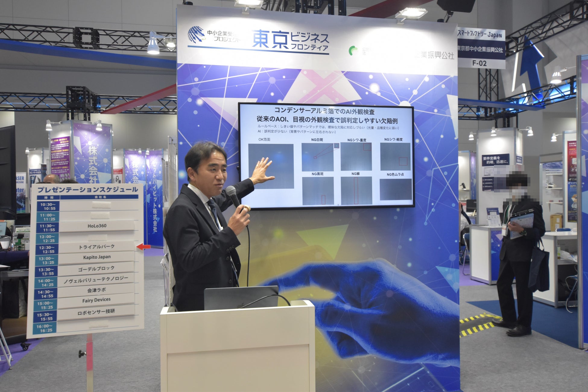 今年は、日本製造業向けのAI検査技術の普及を加速させるため、東京都中小企業振興公社が主催する共同ブースに出展しました。