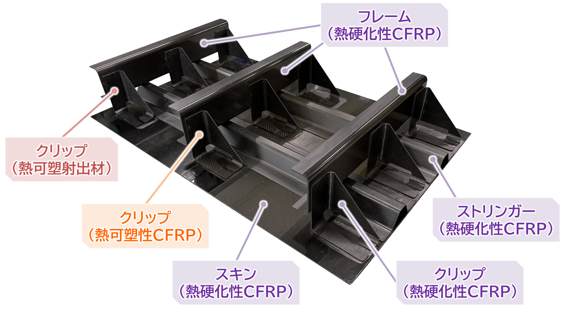 航空機などの分野において、優れた材料特性および長年の使用実績から、構造部材には熱硬化性CFRPが広く適用されています。近年、小型部品や複雑な形状の部材の需要増加に伴い、高レート生産に好適かつ形状自由度の高い、熱可塑性CFRPの適用が広がりつつあります。今後は、これら2つの材料を適材適所で組み合わせることで、性能と生産性を両立した機体の開発が期待されています。一方、熱硬化性CFRPと熱可塑性CFRPの接合で従来用いられてきた接着剤接合やボルトファスナー接合では、接着の信頼性や煩雑な工程が課題となっており、信頼性の高い高速接合技術が求められています。