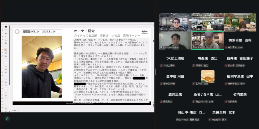 買いクルでは、加盟店・従業員に対して毎週決まった時間を「学びの時間」として確保している。