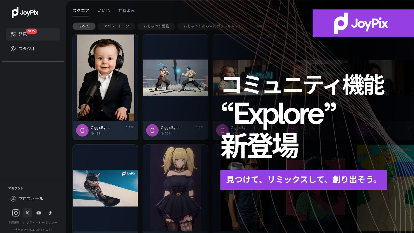 AI動画生成サービス「JoyPix.AI」が新機能「発見(Explore)」を公開 — 作品のシェアとAI動画クリエイターの交流を促す創作コミュニティを提供 —