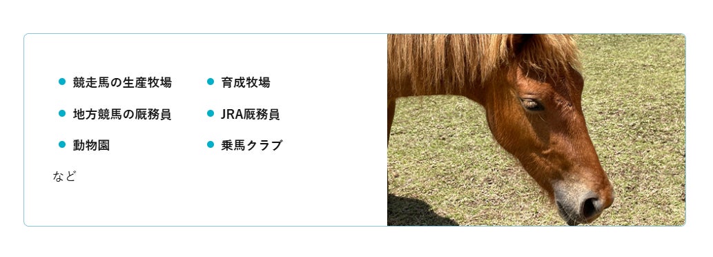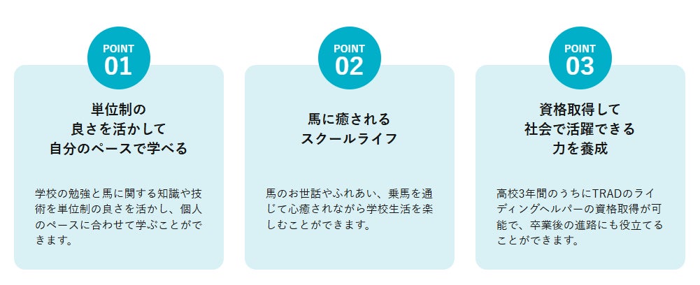 近年、生徒たちが抱えるストレスやコミュニケーションの課題は多様化しています。私たちは、動物とのふれあい、特に馬との交流がもたらす癒しの力に注目し、生徒たちの情操教育や自己肯定感の育成に資する新たな教育プログラムとして、ホースセラピーコースの導入を決定いたしました。このコースでは、馬とのふれあいや飼育活動を通じて心の安定を図りながら、動物に関する知識を深め、関連する資格の100%取得を目指します。