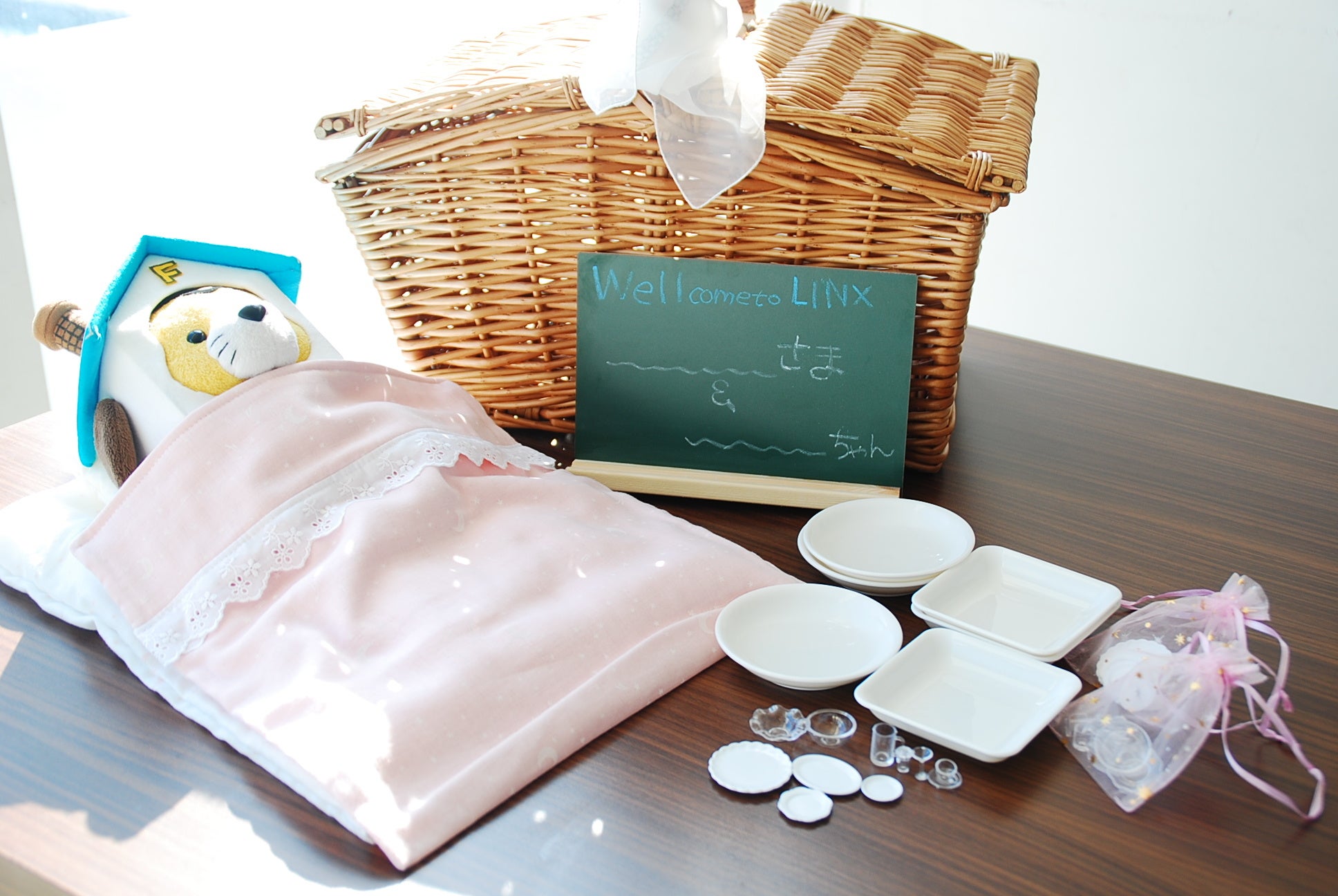 ・ぬい用アメニティセット(布団一式、ガウン、ミニ食器、かご)