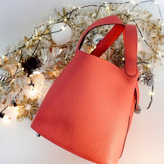 馬のエサ桶をモチーフにしたと言われるピコタンロック。丸みを帯びたフォルムと金具ロックが可愛らしさとエレガンスを感じさせる名品。18サイズは日常に必要なアイテムが無理なく収まる絶妙な容量で、手にするだけで身にまとう柔らかいニュアンスが人気。コンパクトながら実用性が高く、シンプルなワンハンドル構造と柔らかなレザーが、“気負わず持てるエルメス”として幅広い世代に支持されています。初めてエルメスを選ぶユーザーの満足度が非常に高いモデルで、毎日の外出を少し特別にしてくれる存在のロングセラー。