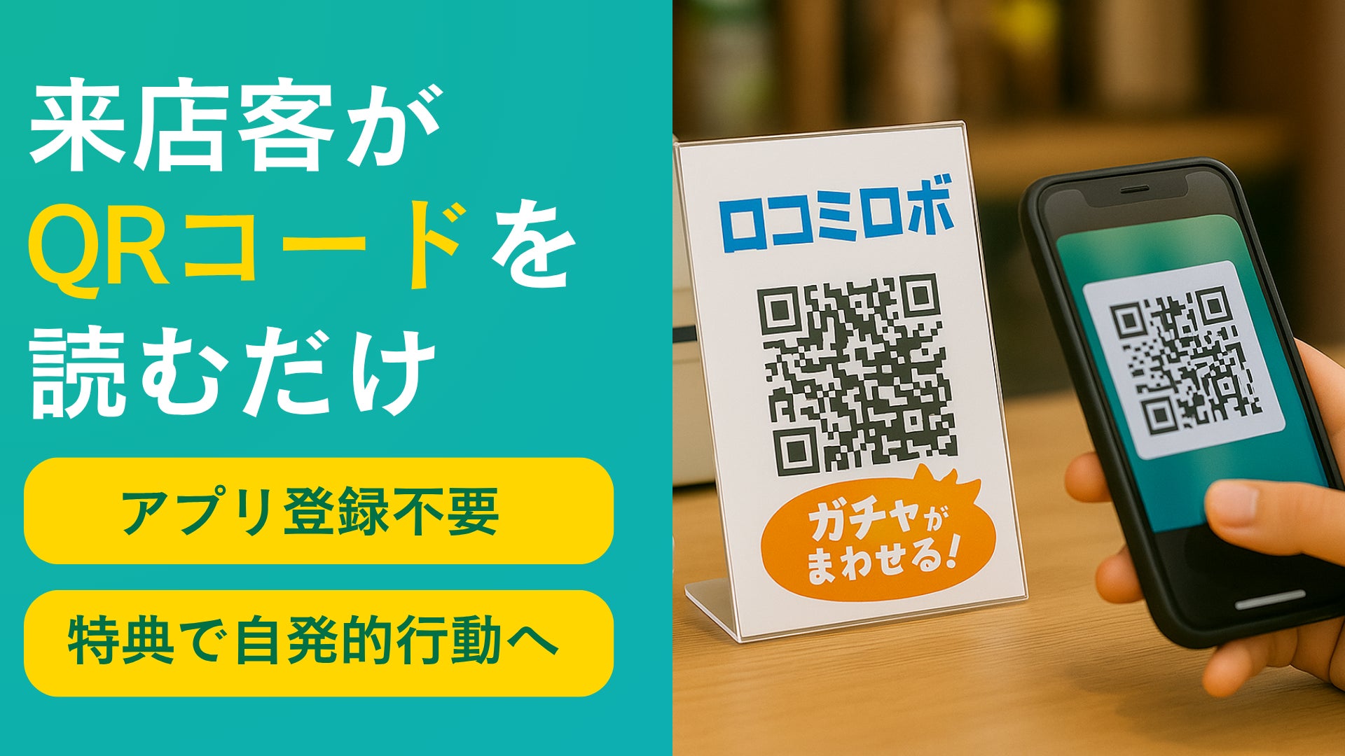 口コミロボ™は、レジ横やテーブルに QR コードを設置するだけで来店客が