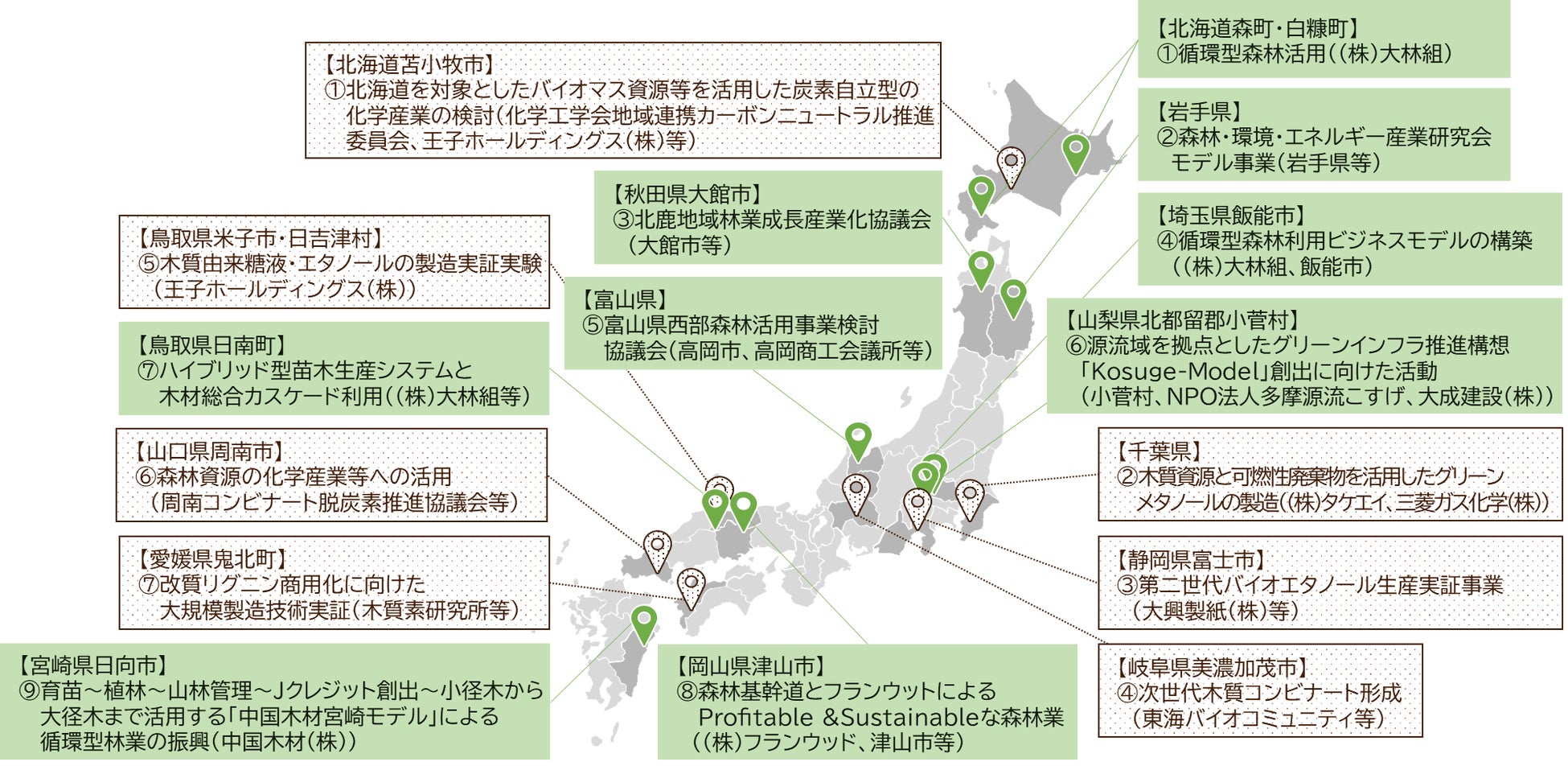 プラチナ森林産業イニシアティブの参加団体等が関わる森林資源活用プロジェクトを取りまとめました。