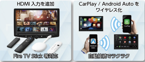 HDMI入力とワイヤレスCarPlay/Android Autoをこの1台で実現します。