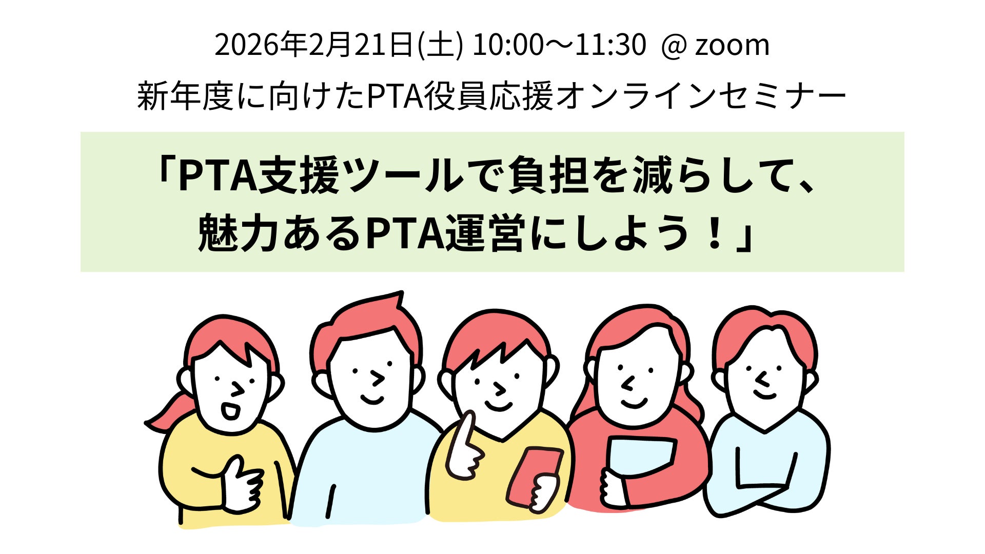 【イベント告知】【2月21日開催】新年度に向けたPTA役員応援オンラインセミナー「PTA支援ツールで負担を減らして、魅力あるPTA運営にしよう!」