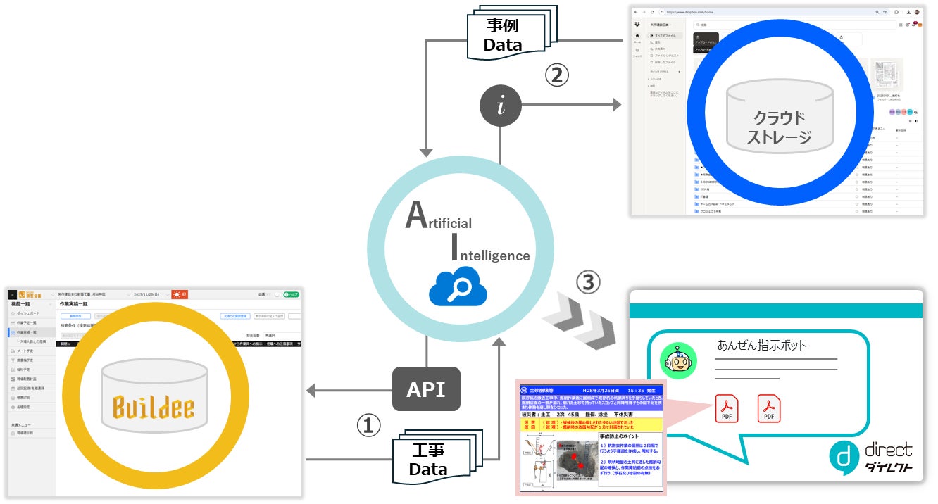 矢作建設工業株式会社(本社:名古屋市/代表取締役社長:髙柳充広)は、建設現場における繰り返し災害を撲滅するため、AIが工事の進捗に合わせて過去の災害事例を検索・抽出し、チャットで当該事例を配信するシステム「AIあんぜん指示ボット」を開発しました。