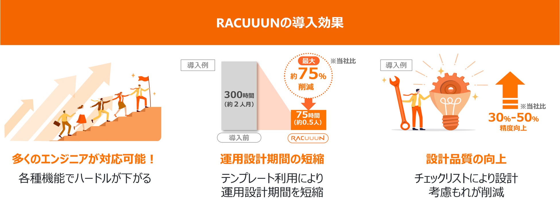 これにより、多くのエンジニアが対応可能となり、運用設計の期間は最大75%短縮、品質は平均30~