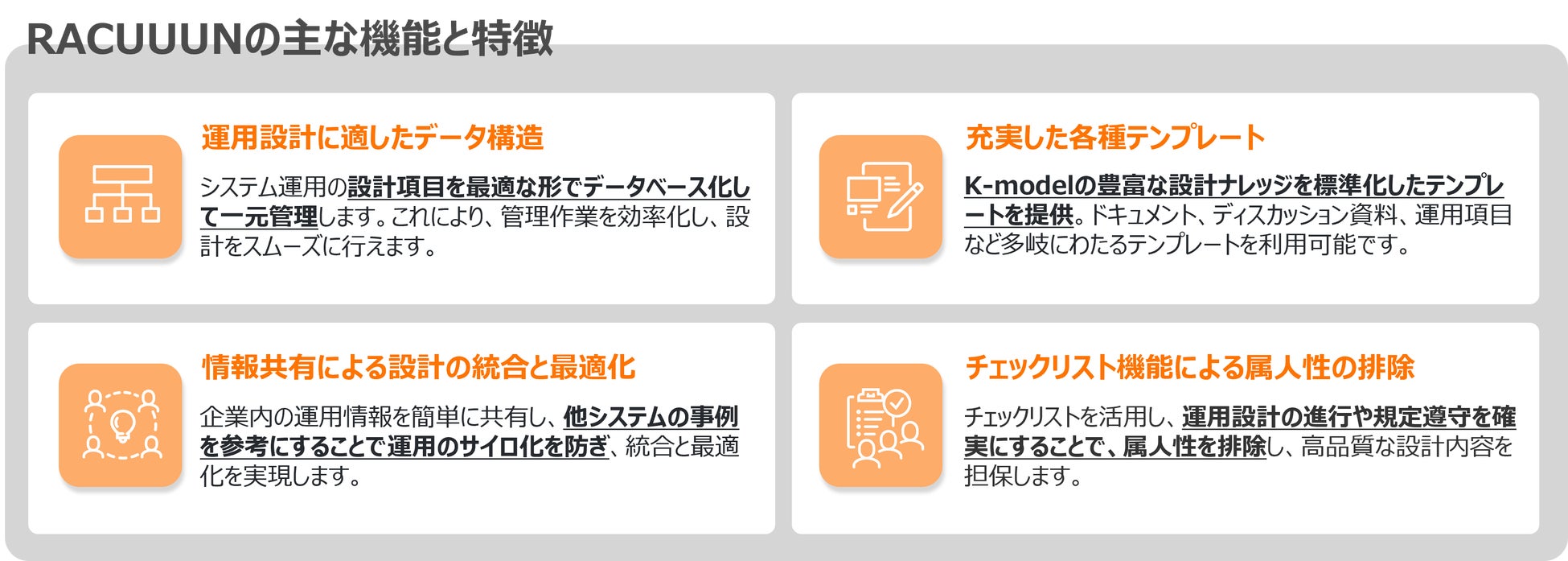 RACUUUNは、運用設計におけるそれらの課題を解決するソリューションです。