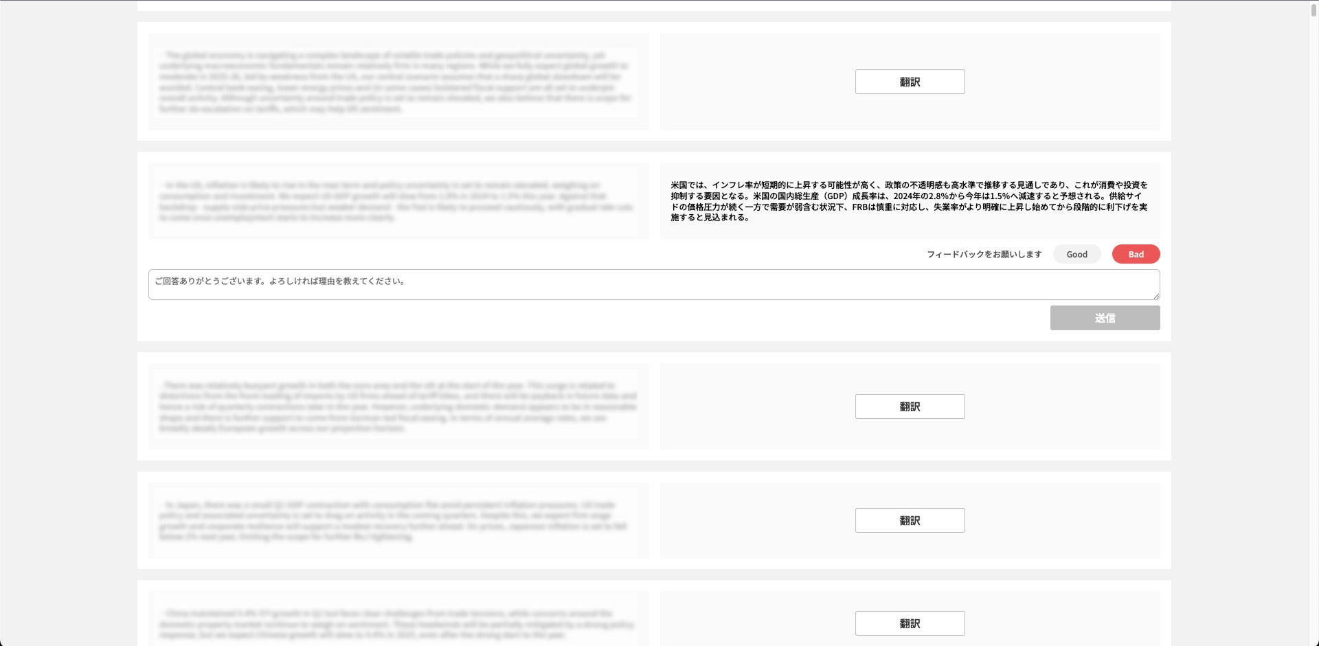 グローバルに連動する金融市場関連業務では世界各国の情報を収集すること、また日本の情報を世界に発信することが重要な仕事の一つになっています。マーケットレポート、ニュース、中央銀行のリリースなど日々作成される様々な金融市場関連文章を効率的に英訳・和訳することは従業員の業務効率化・情報発信力の強化という点で重要ですが、既存の翻訳ツールでは金融市場関連文章に特有な表現を上手く翻訳できないことが課題になっています。