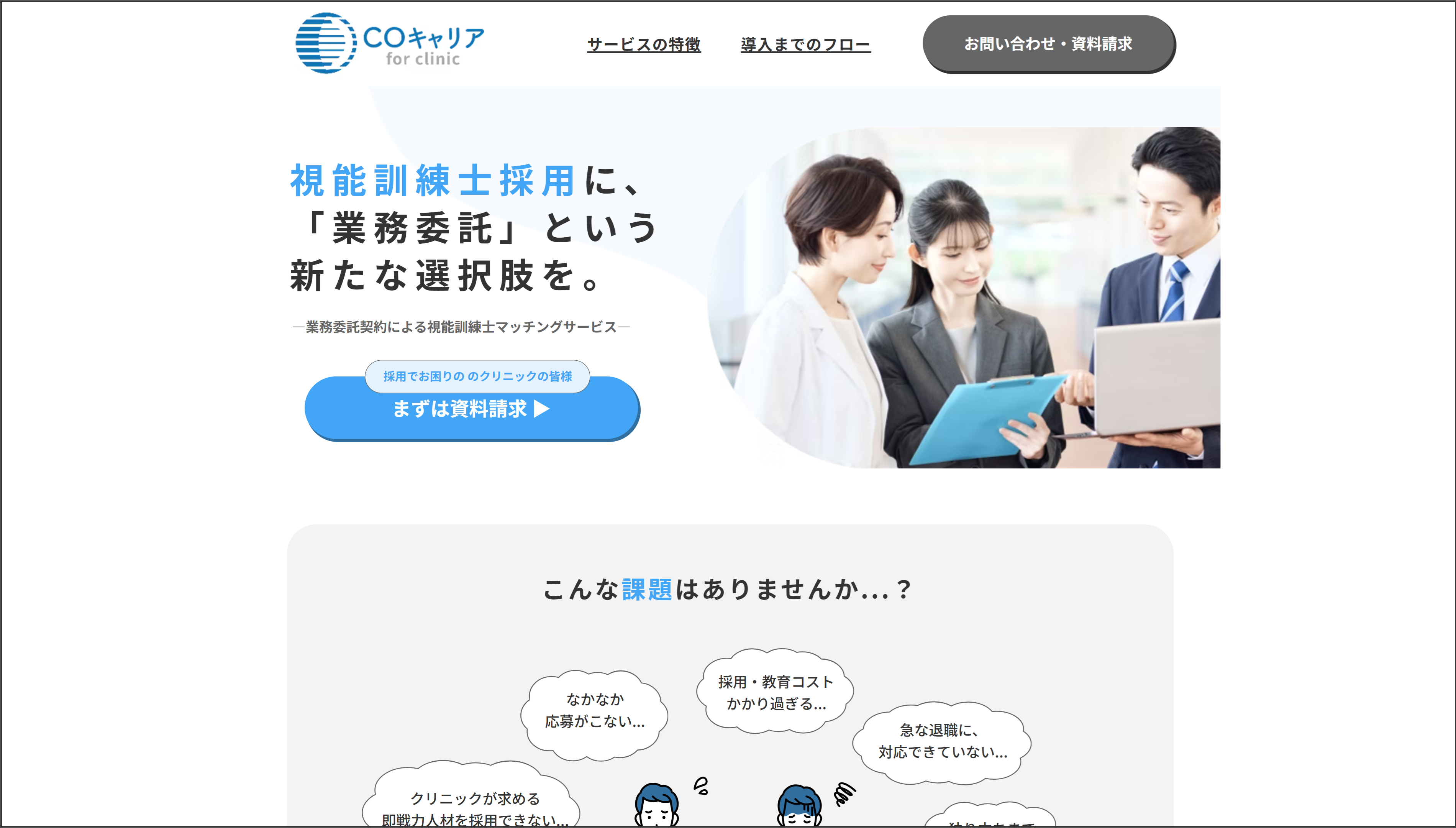 “人がいない”のではなく、“つながっていない”だけだった。眼科クリニック側は「繁忙曜日だけ人手が足りない」「急な欠勤・退職に対応できない」「採用しても定着しない」といった課題を抱えています。一方、視能訓練士側も「フルタイム勤務は難しい」「職場との相性がわからない」「ブランクが不安で復帰できない」といった悩みを抱えています。COキャリアは、この両方の「もったいない」をつなぐサービスです。
