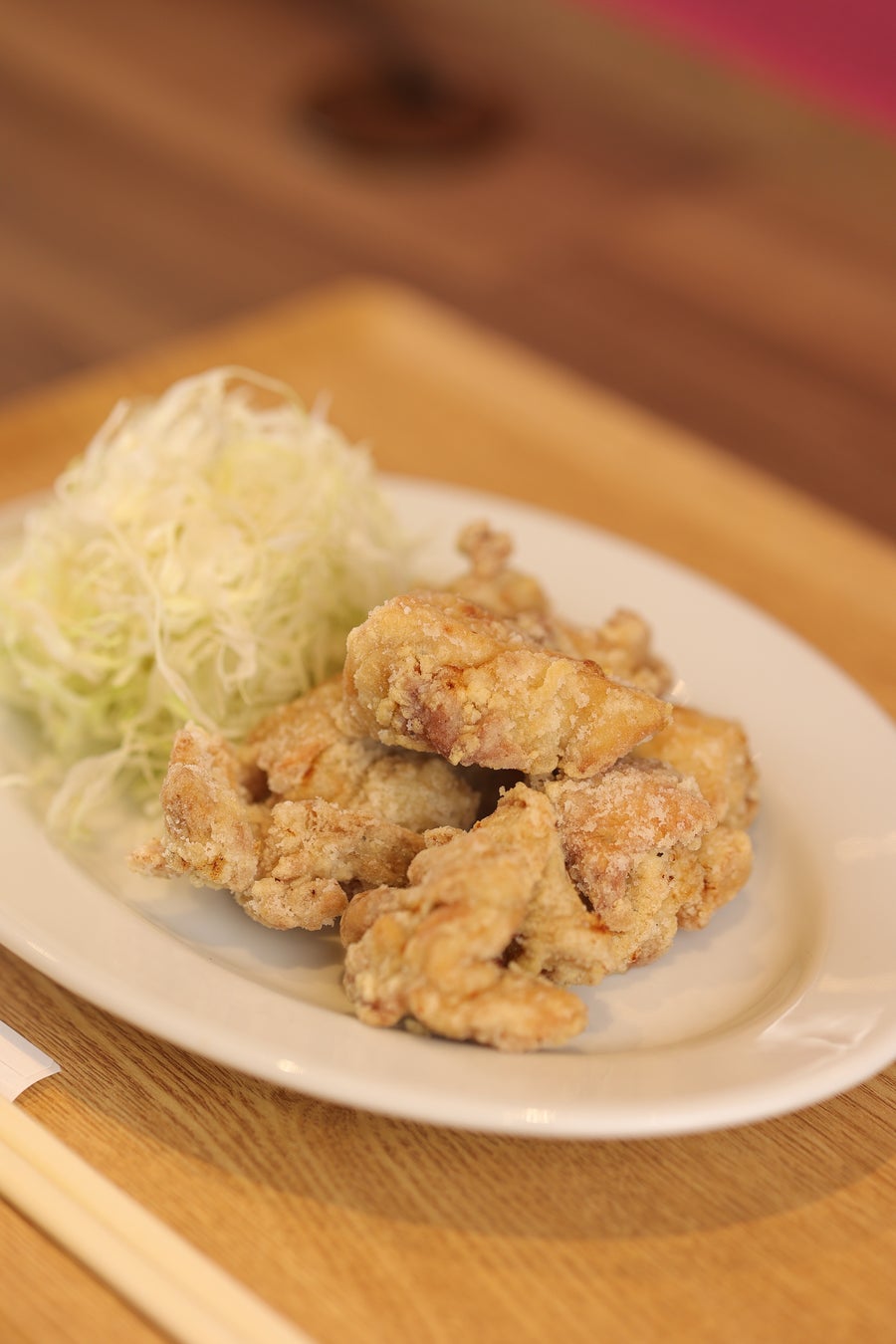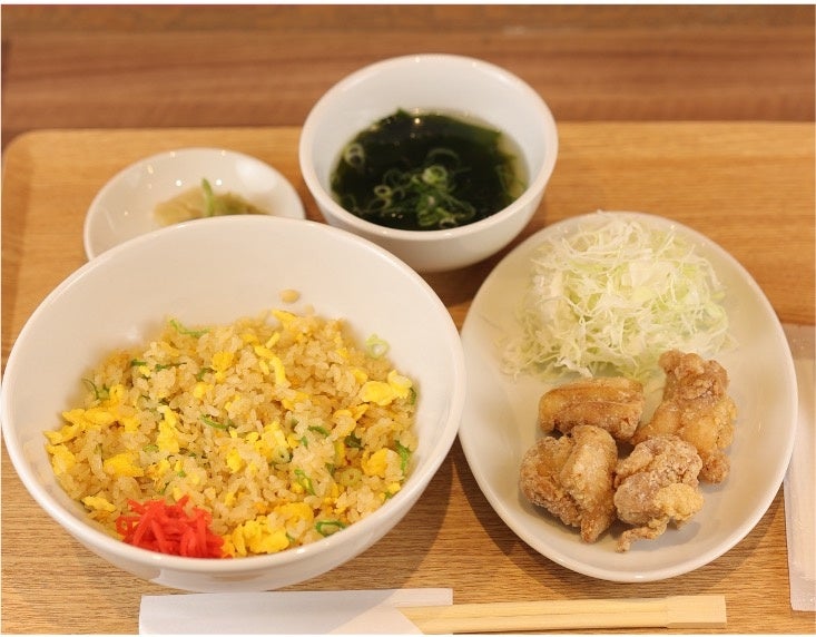 ・唐揚げ定食 (唐揚3ケ・チャーハン・スープ・ザーサイ) ¥900