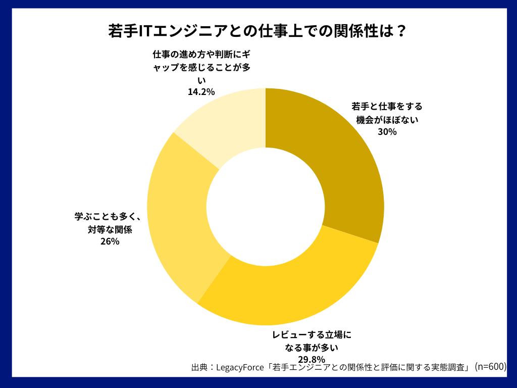 シニアエンジニア特化のフリーランス求人サイト「レガシーフォース」を運営する株式会社モロ(本社:東京都港区、代表取締役:前田洋平)は、40〜60代のITエンジニア600人を対象に、「働き方と若手エンジニアとの関係性に関する実態調査」を実施しました。