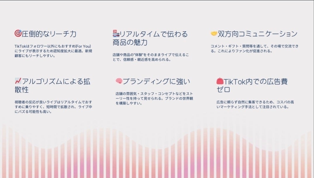当社は今後も、TikTokを中心としたライブ配信において、企業や店舗の価値を最大化するブランディング支援を強化してまいります。