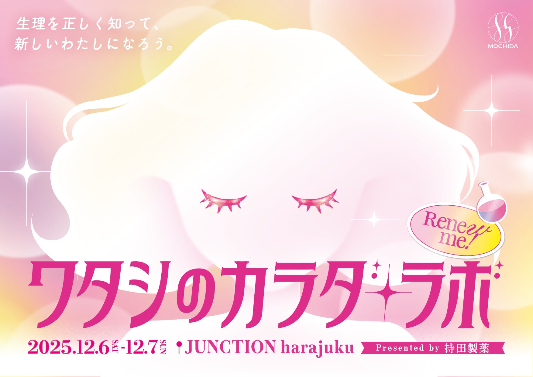 持田製薬株式会社(本社:東京都新宿区、代表取締役社長:持田 直幸、 以下「持田製薬」)は、 “見えにくい・語られにくい” 生理の悩みへの意識や関連疾患の認知向上、および婦人科受診のハードルを下げることを目的とした体験型イベント『 Renew me!ワタシのカラダ・ラボ 』を2025年12月 6日(土)・7日(日)の2 日間、「JUNCTION harajyuku」(東京都渋谷区) にて開催します。