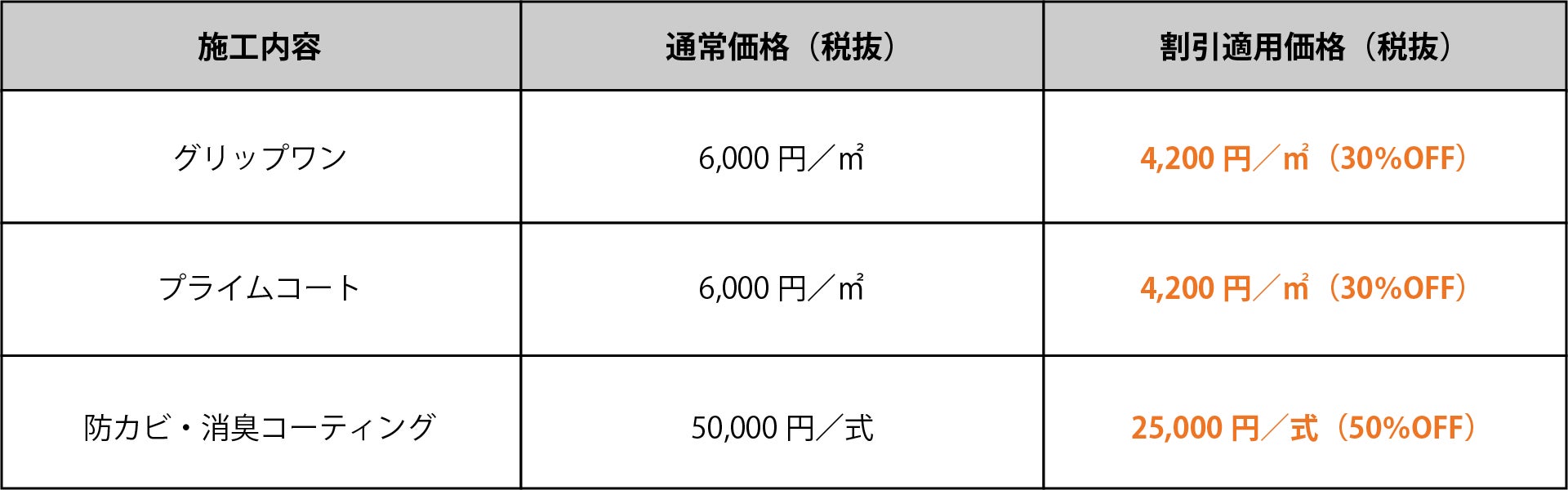 特典1:グリップワン、プライムコートのご契約で30%OFF
