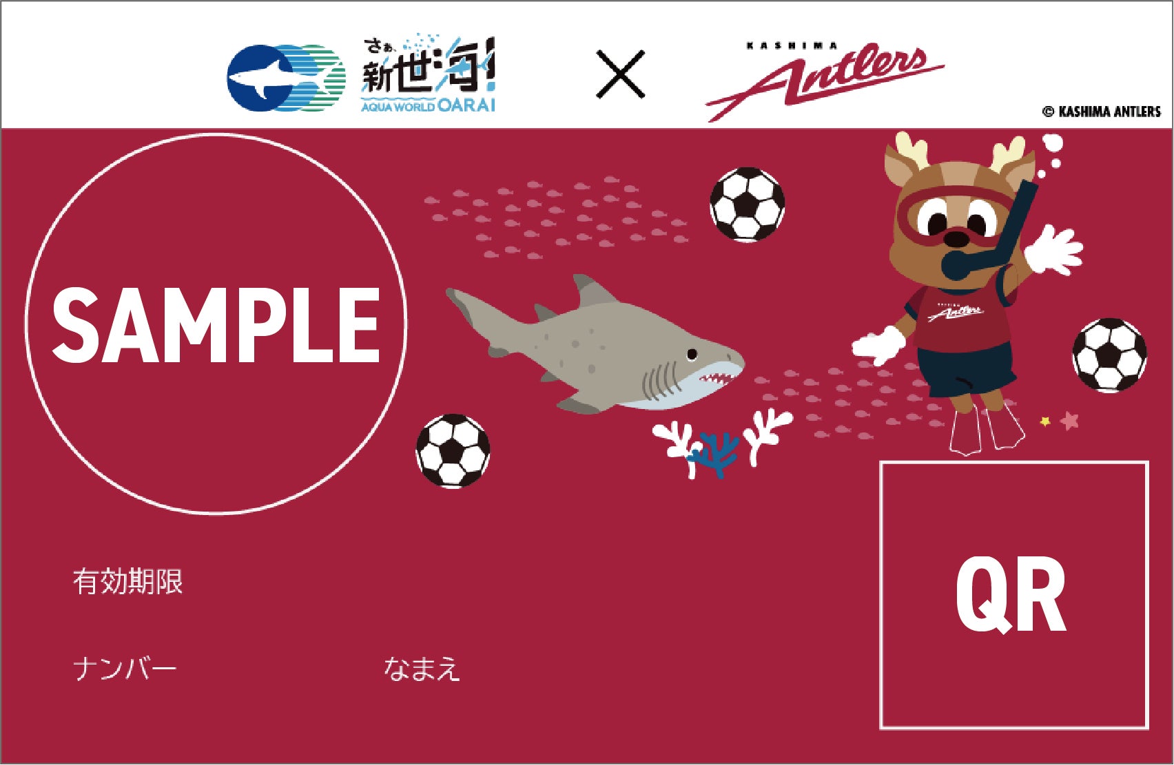 初コラボを記念し、この期間にしか手に入らない鹿島アントラーズとのコラボ限定デザインの年間パスポートを期間限定で販売いたします。発行日より1年間、何度でもアクアワールド・大洗をお楽しみいただけます。館内はもちろん、周辺施設で使用することができる特典もたくさんある、とてもお得なパスポートです。
