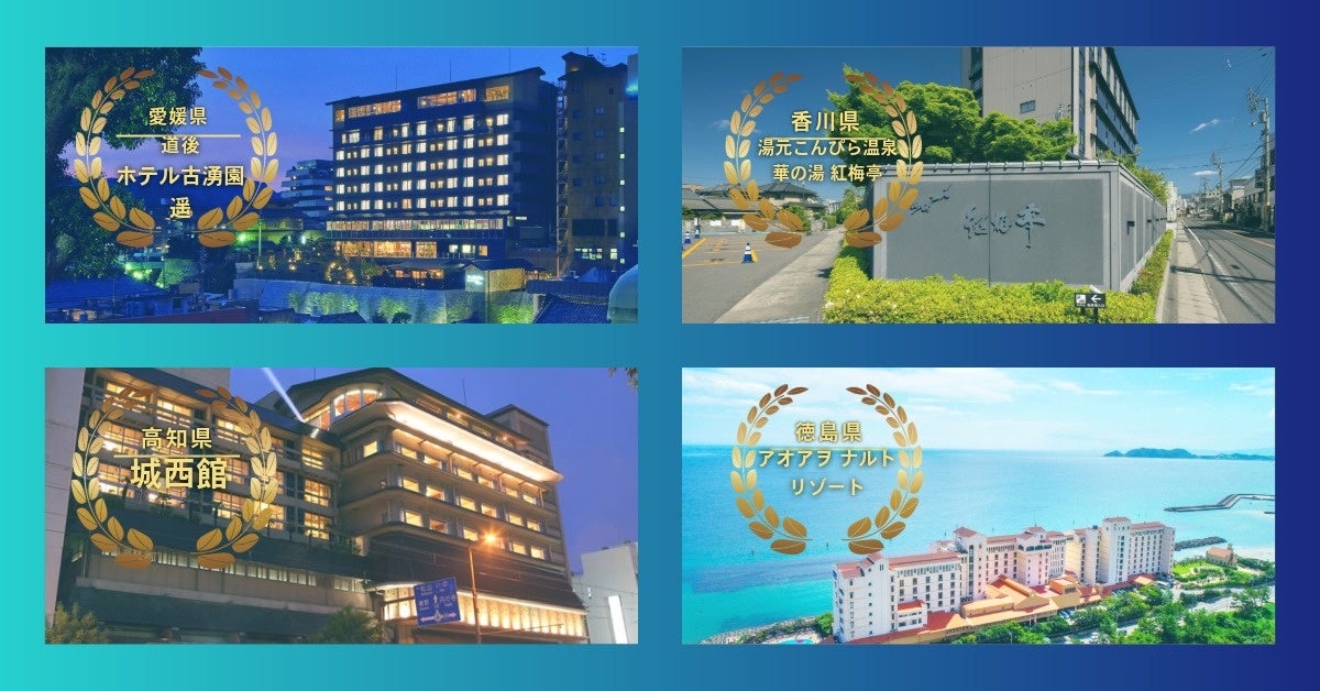 四国4県周遊<人気の宿 ~ 徳島「アオアヲ ナルト リゾート」+高知「城西館」+愛媛「道後温泉ホテル古湧園 遥」+香川「湯元こんぴら温泉華の湯 紅梅亭」~ 数珠つなぎ>航空券付宿泊+OPレンタカーも。