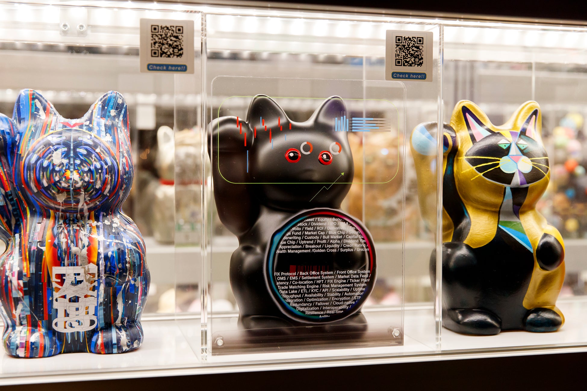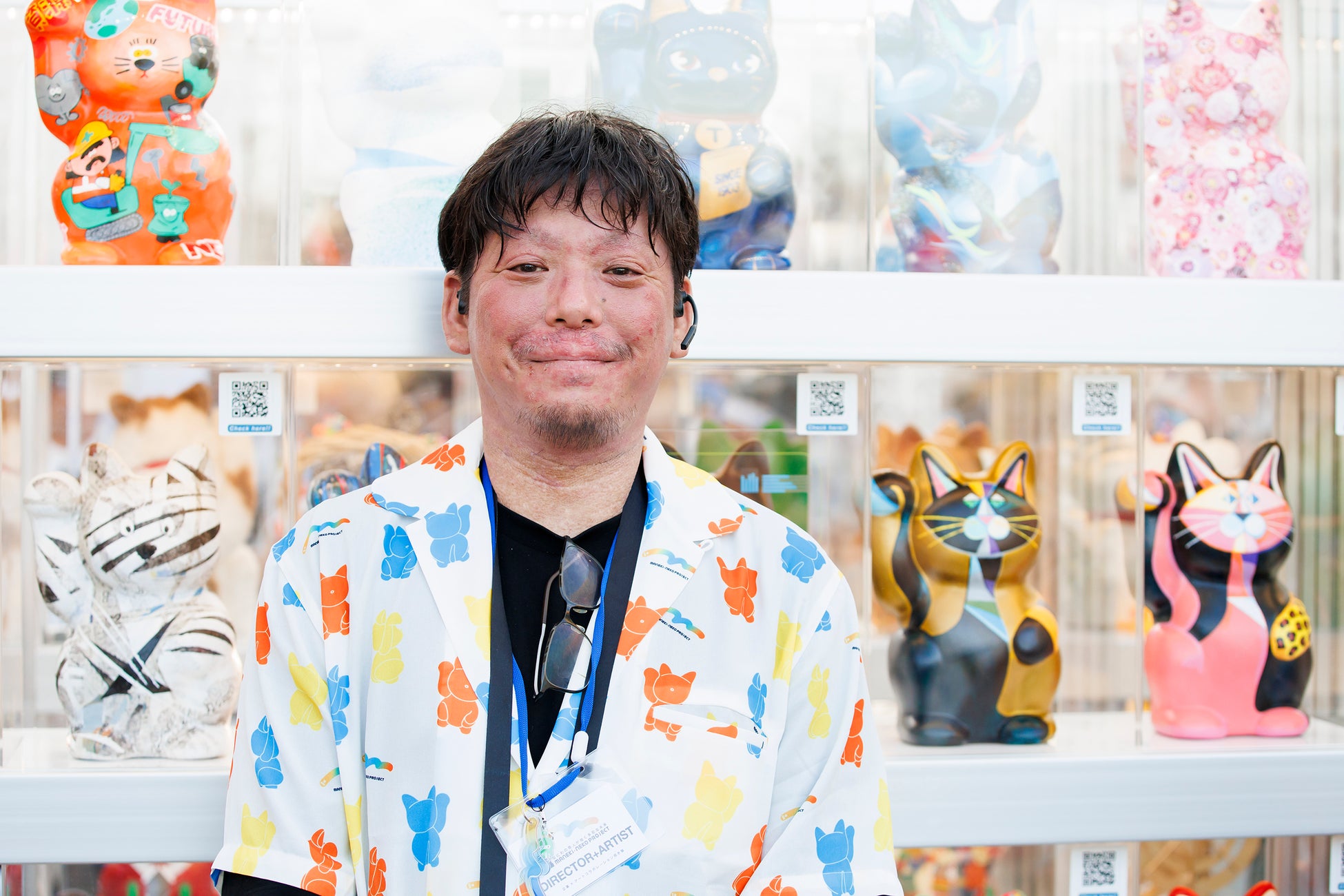 展示された120体の招き猫は、すべて30cmの共通フォーマットながら、表情、色づかい、素材、世界観は多種多様。自社で手がけたものや、芸術家、パラアート作家とのコラボレーションによる作品など、異なる個性が一堂に会した空間となりました。