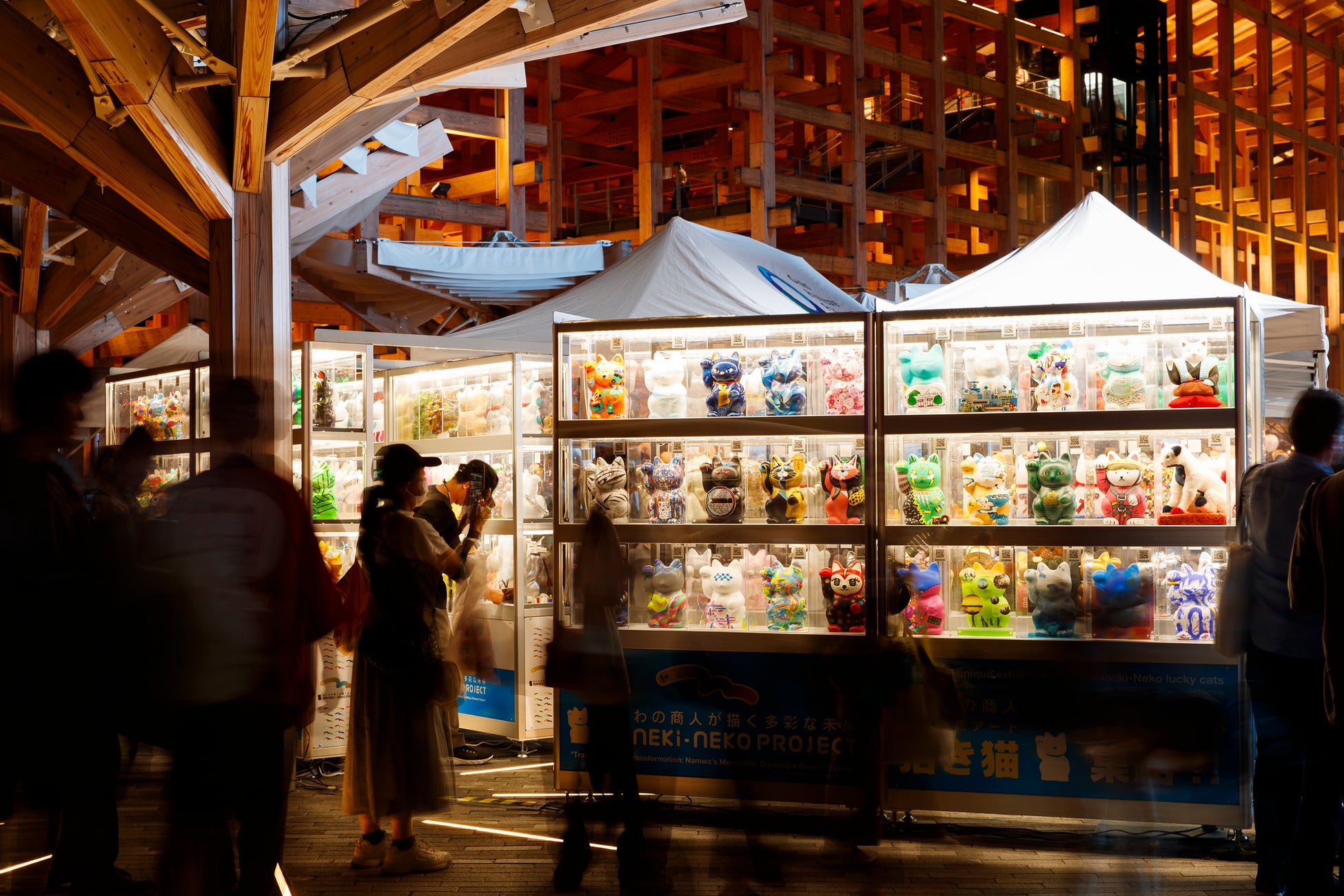 9月9日という、日本古来より一年で最も縁起が良いとされる日に開催されたことから、「世界で最も福が集まる場所」をつくることが本企画の目的とされました。ステージでは住吉大社のご祈祷をはじめ、未来や福をテーマとしたトークイベントと共に、企業や芸術家によって作られた120体の招き猫の展示が行われました。