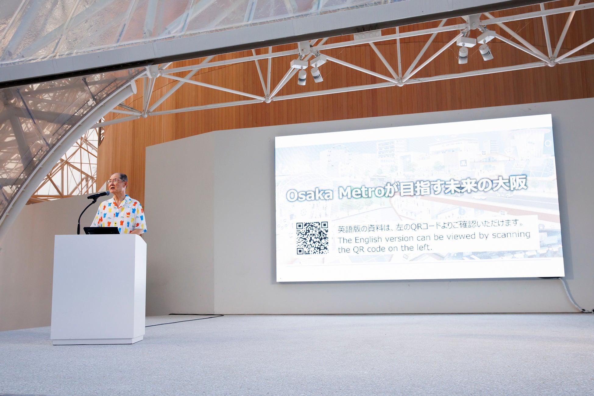 河井社長は、「Osaka Metroが目指す未来の大阪」について講演。人口減少という社会課題に共に立ち向かうことの重要性を説き、将来を見据えたOsaka Metroの取り組みと、社会全体が直面する課題への深い洞察を語りました。