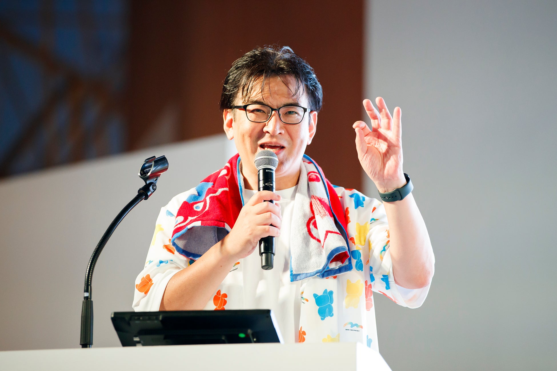 ミャクひろしこと溝畑氏は、「大阪の未来社会について」と題した特別トークセッションを実施。日本の観光産業が大きく成長している現状に触れ、「みんなどんどん儲けるための空気が溢れております!」と熱弁。子供からの手紙のエピソードを交え、万博が未来を担う世代に与える夢と感動の重要性を語りました。