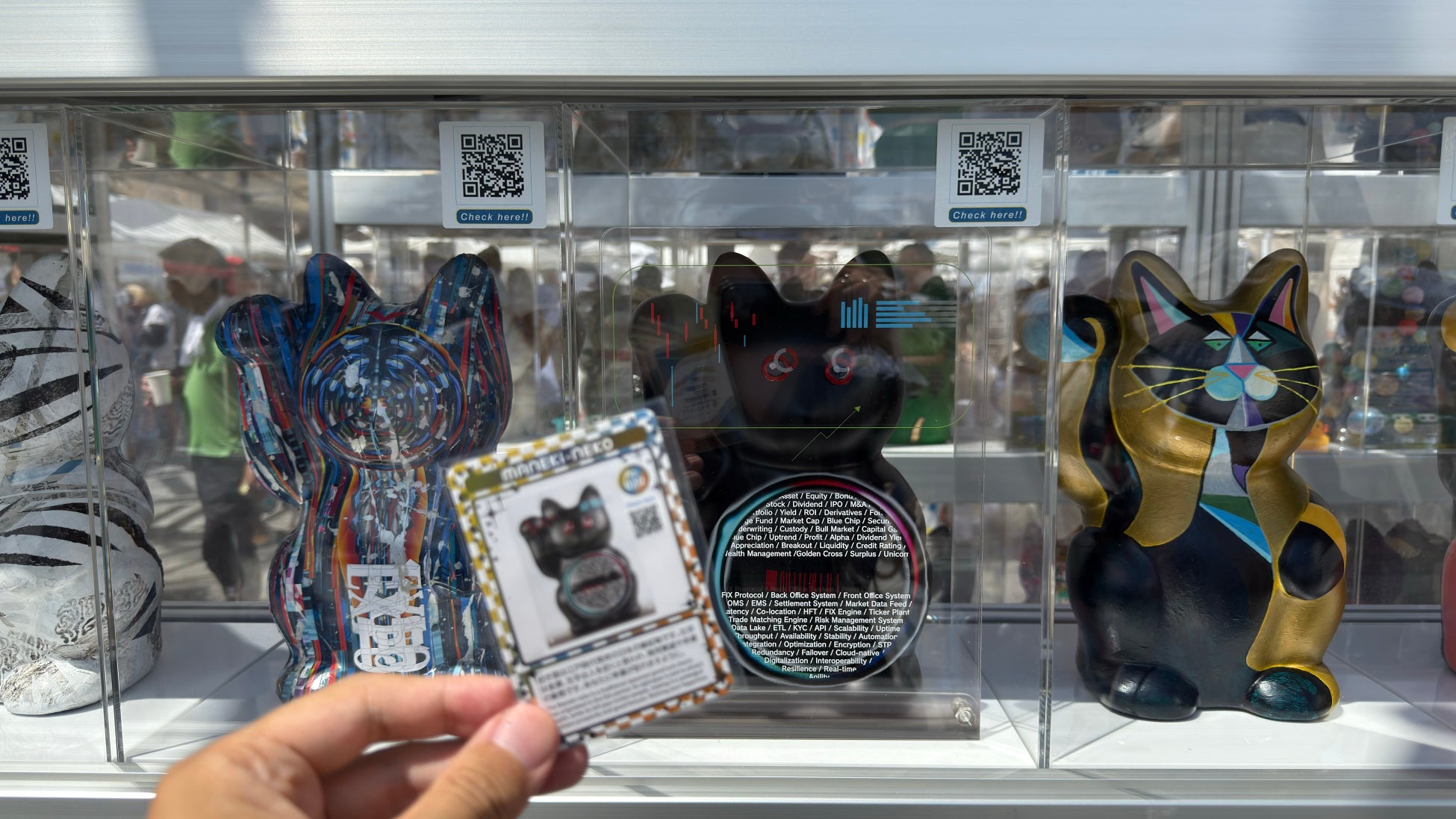 来場者は、気になる招き猫のそばにあるQRコードを読み取ることで、作品を手がけた企業や芸術家のプロフィール、そして込められた想いを閲覧できる仕組みに。当日は多くの来場者が招き猫を撮影したり、QRコードを読み取ったりして楽しんでいました。