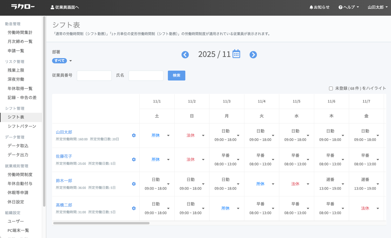 株式会社ラクロー(本社:神奈川県相模原市、代表取締役:岩崎 奈緒己)が運営する打刻レス勤怠管理サービス「ラクロー」は、この度、シフト制の従業員を抱える企業向けに、管理画面から直感的にシフト登録・管理が行える「シフト表機能」をリリースいたしました。