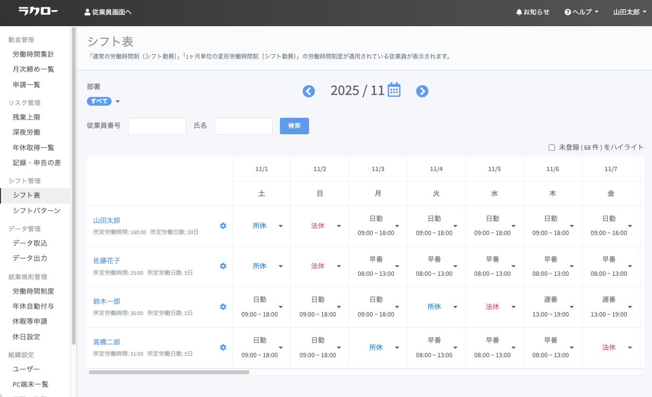 打刻レス勤怠管理サービス「ラクロー」、シフト登録の工数を削減する「シフト表機能」をリリース