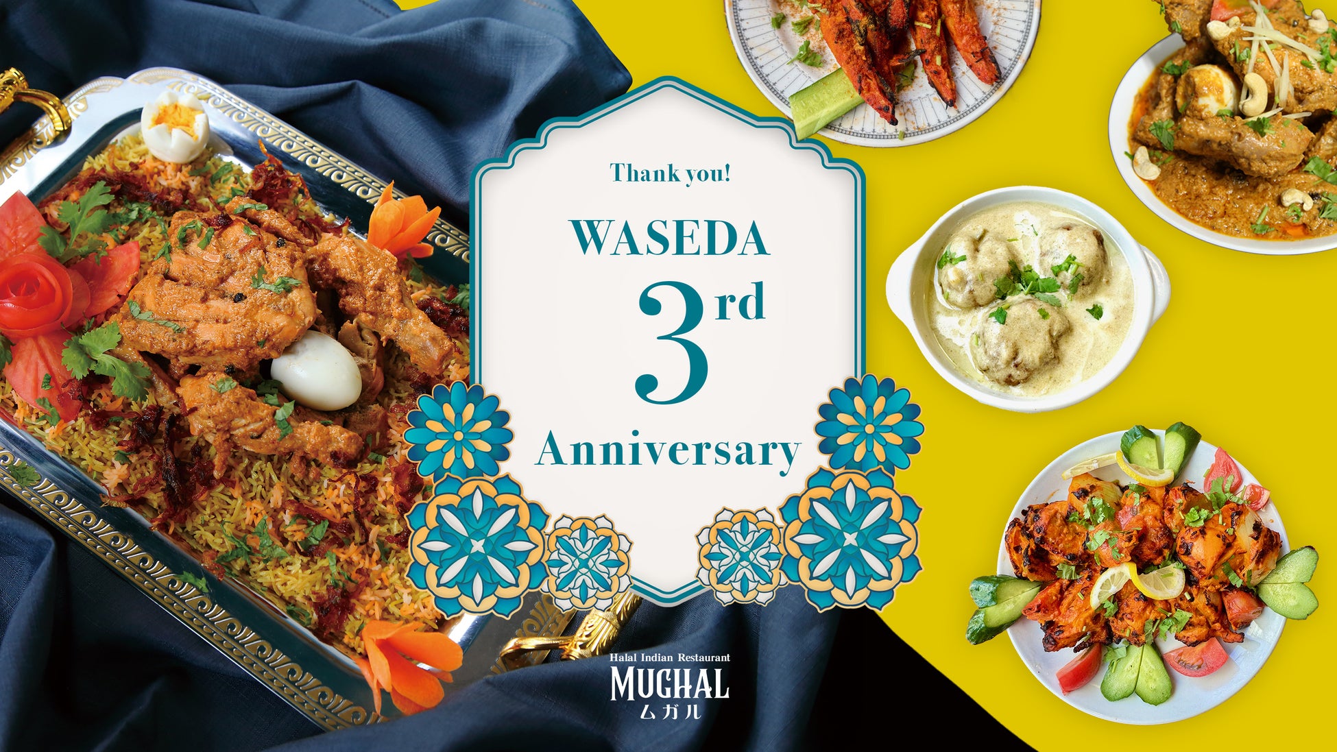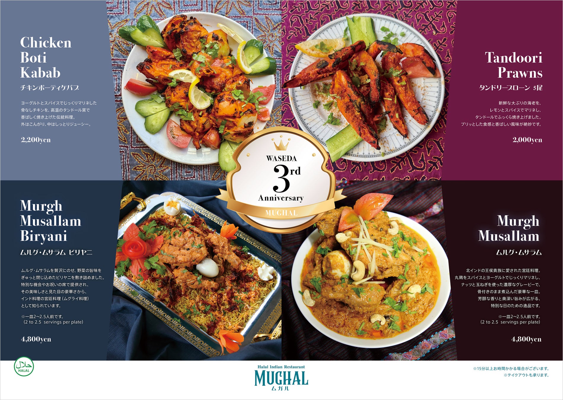 ハラールインド料理レストラン「ムガル」早稲田店が3周年を迎えます。感謝をこめて特別メニューとノベルティを提供
